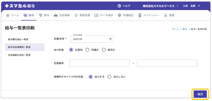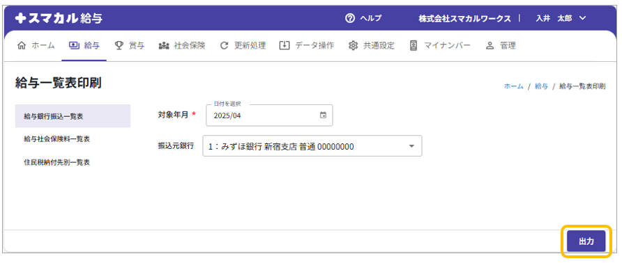 給与一覧表印刷