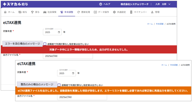 ・対象データが警告のみの場合、連携用のファイルが出力されます。エラーリストを確認し、必要に応じて修正と再出力を行います。