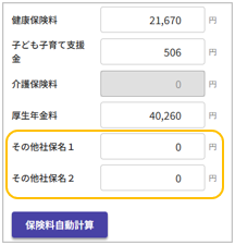 ⚠その他社保名1/2の名称は、[初期設定]の「基本設定」タブで変更できます。詳しくは、「初期設定-その他項目名設定」を参照してください。