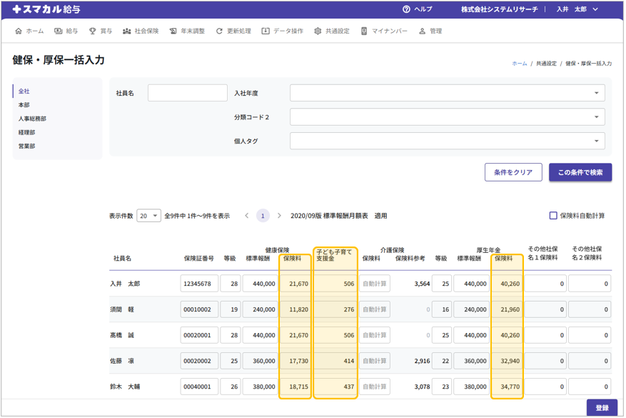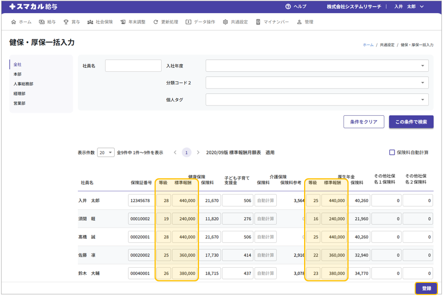 社会保険料一括変更