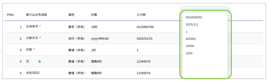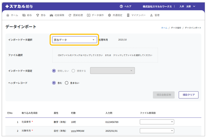 取り込み先項目 | スマカル給与側の項目名 |
