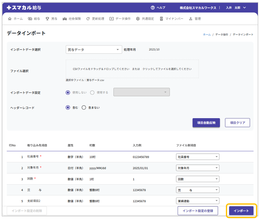 賞与データインポート