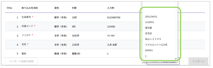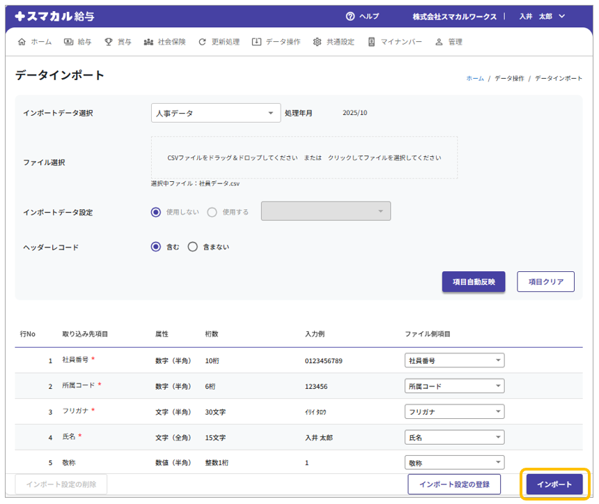基本的な設定や操作については、「データインポート基本操作」を参照してください。