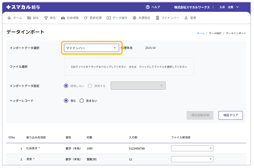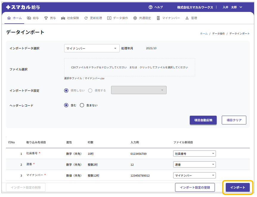 マイナンバーデータインポート