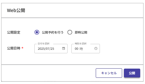 ③確認画面で公開内容を設定し[Web公開]をクリックします。