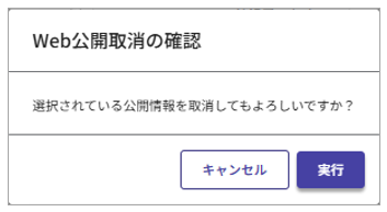 ④取消の確認画面が再度表示されるので[実行]をクリックします。