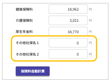 ⚠その他社保名1/2の名称は、[初期設定]の「基本設定」タブで変更できます。詳しくは、「初期設定-その他項目名設定」を参照してください。