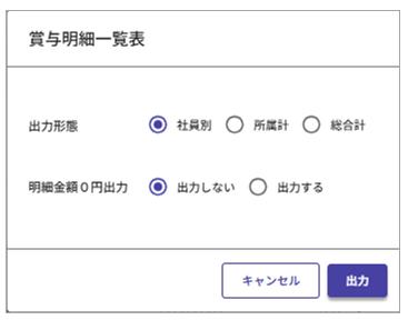 賞与一覧で入力や登録をした賞与データをもとに、各従業員の賞与データ内容の一覧をPDF出力します。