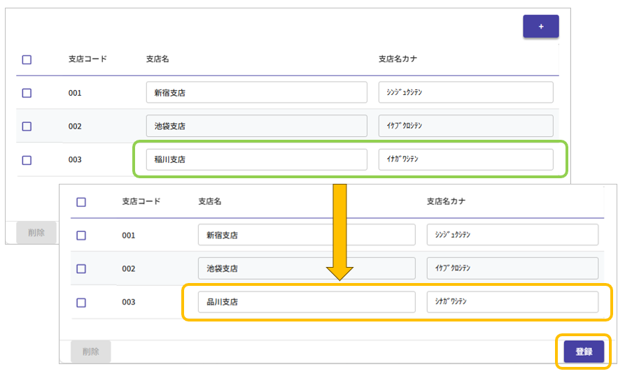 ◆銀行支店マスタの編集