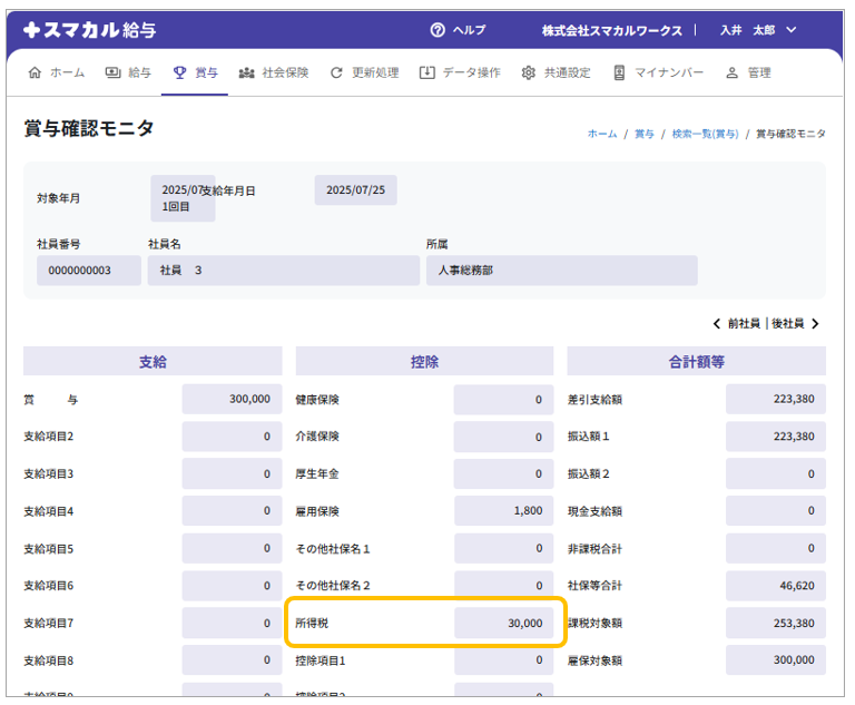 確認後、通常通り賞与処理を行います。